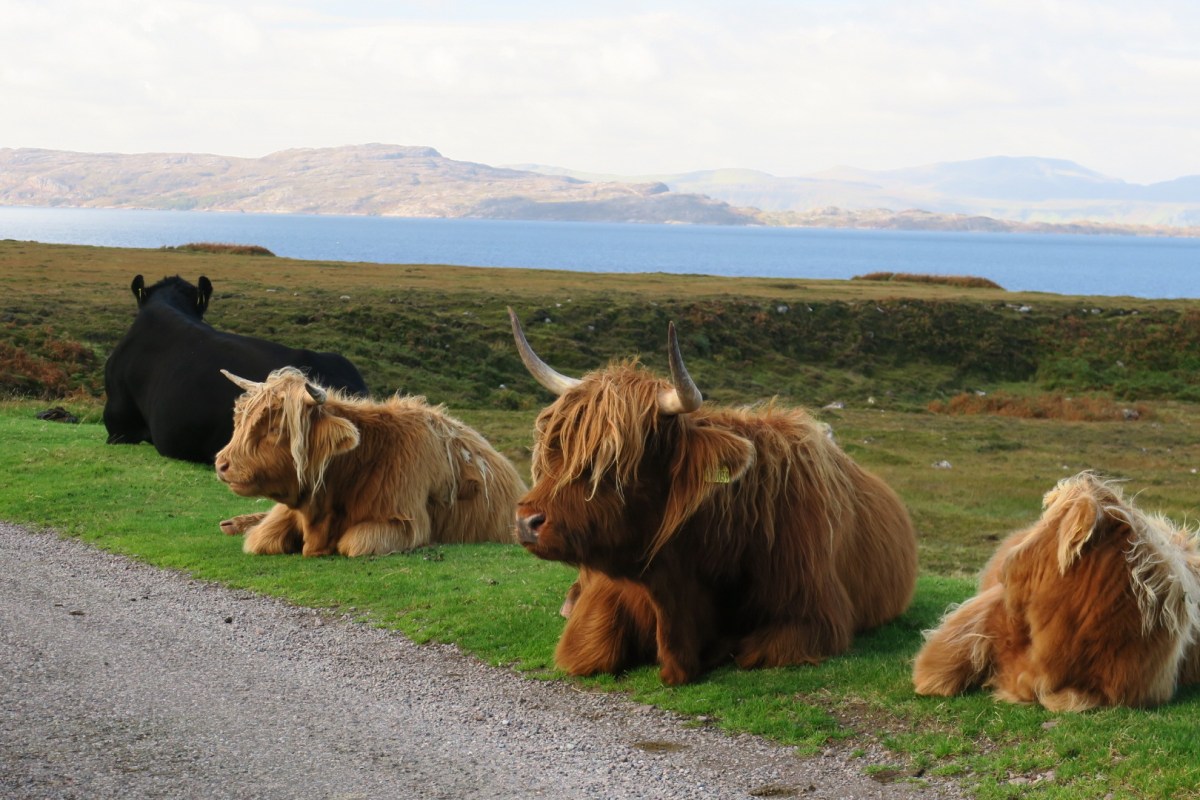 We did the route without cheating in two days, comfort stops for JarJar and a few wow stops, it was hard work but great fun. The overnight stop in Ullapool was a nice treat. I was hoping the hotel room would have a bath so I could have a soak, never mind there will be wifi, never mind there was a cooked breakfast with no back breaking sausages! Every cloud.
